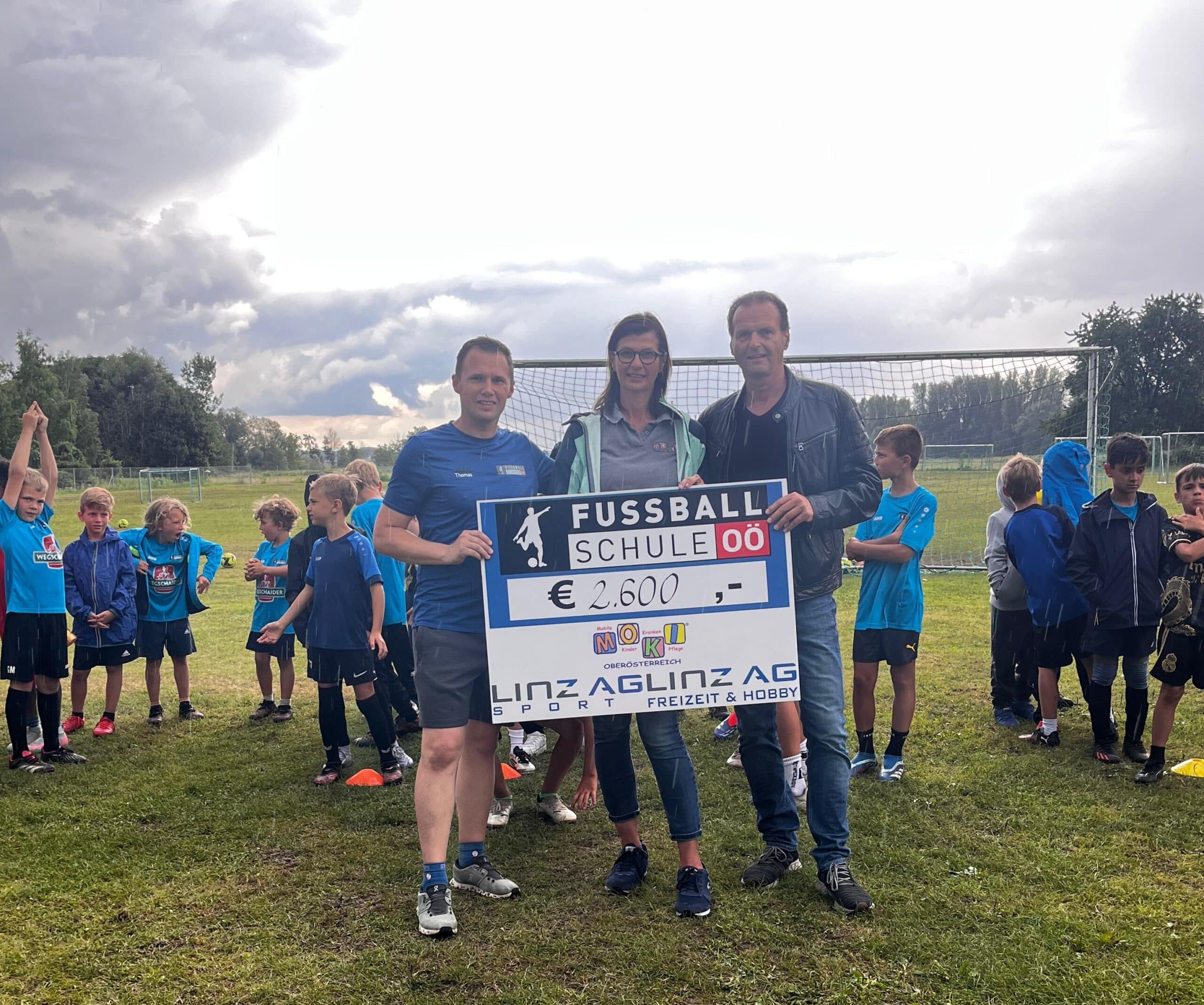 Auch heuer übergaben Gerald Brandstätter von der Linz AG und Thomas Leopoldseder von der Fussballschule OÖ wieder den Erlös des Sommerfussballcmps der LINZ AG.